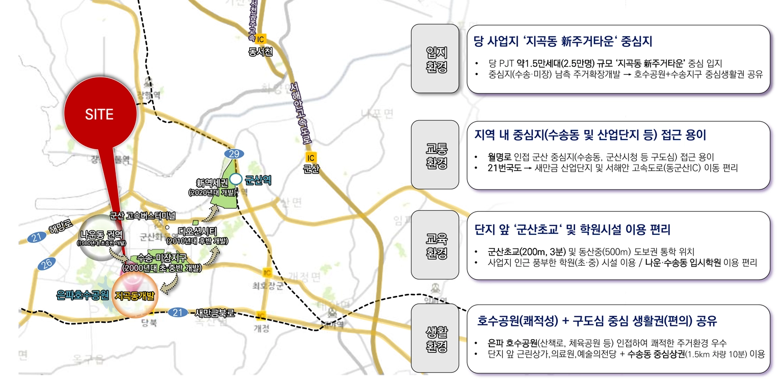 새만금 개뱔축 중심, 수송•미장•지곡을 잇는 군산 신주거벨트 핵심 입지
